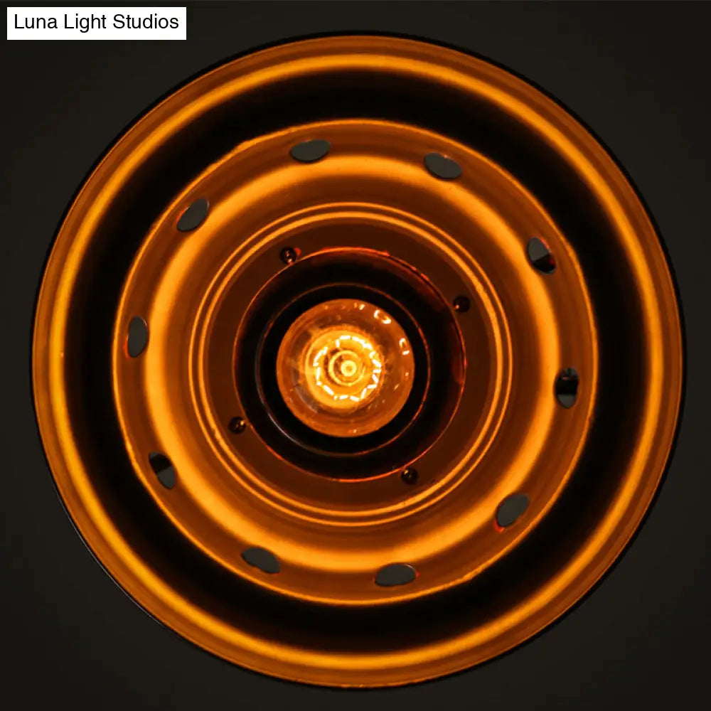 Suspension rustique de grange avec un luminaire suspendu en fer forgé et un design de trou en cuivre patiné