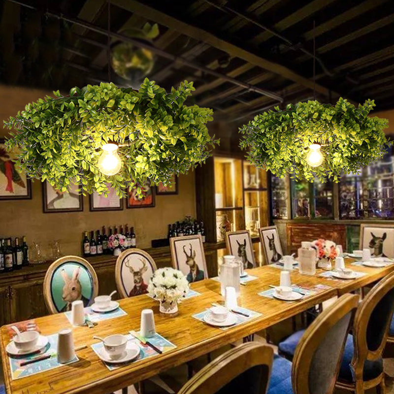 Plafonnier rétro en métal avec ampoule apparente et décor végétal - Finition noire