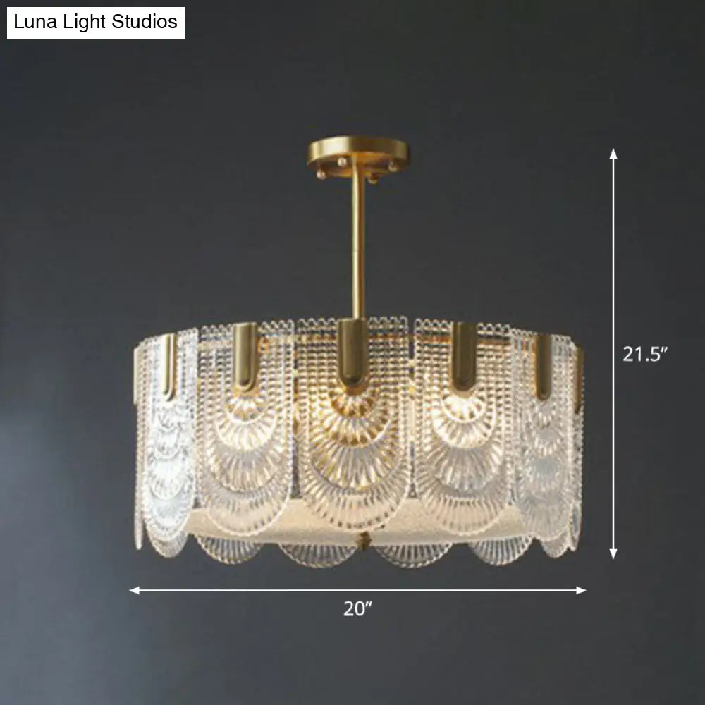 Lustre rond en laiton avec cristal côtelé
