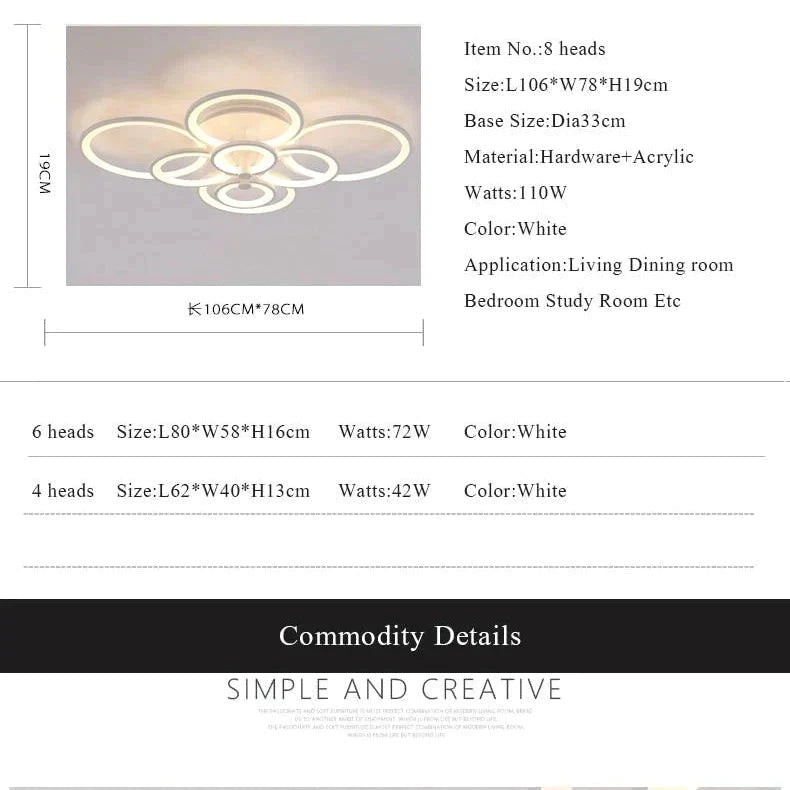 Surface Mounted Modern Led Ceiling Lights For Living Room Bedroom White Color / 8 Heads 1060X780Mm