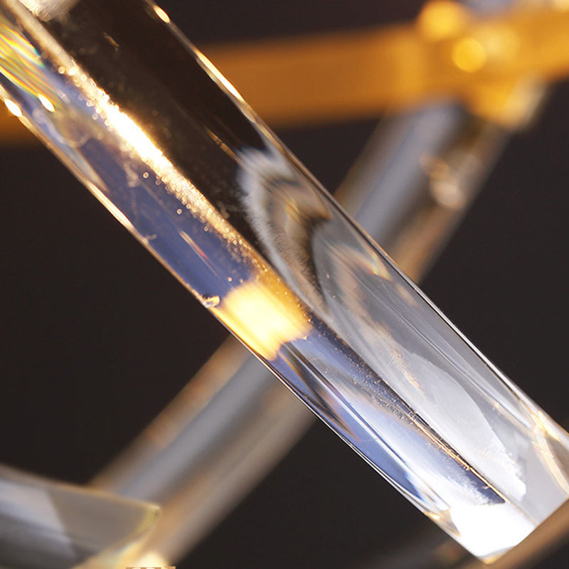 Ce produit est une lampe de lustre à 6 têtes avec une suspension dorée moderne et un abat-jour en cristal incurvé en orbite. Il est fait de cristal et est de tension 220V-240V 110V-120V. La base de l'ampoule est E12/E14 et le type de lumière est LED.