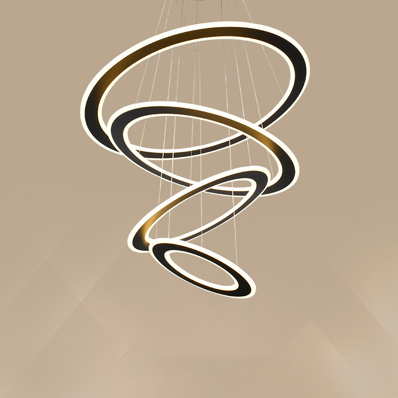 Art Deco Circular Led Chandelier Lamp In Black For Stairway Ceiling 4 /