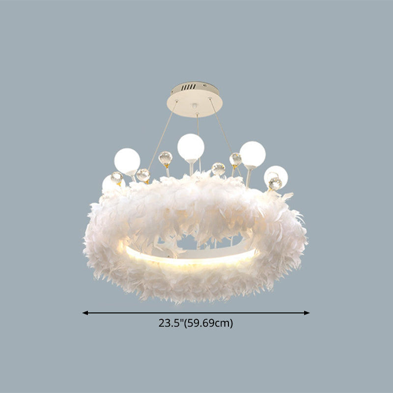 Modern White Feather Hanging Pendant Light For Bedroom / 19.5 Crown
