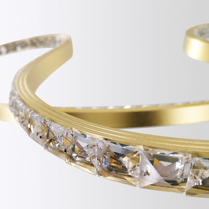 Lustre en cristal à torsion dorée minimaliste - Éclairage de plafond à LED pour salle à manger à lumière chaude / blanche