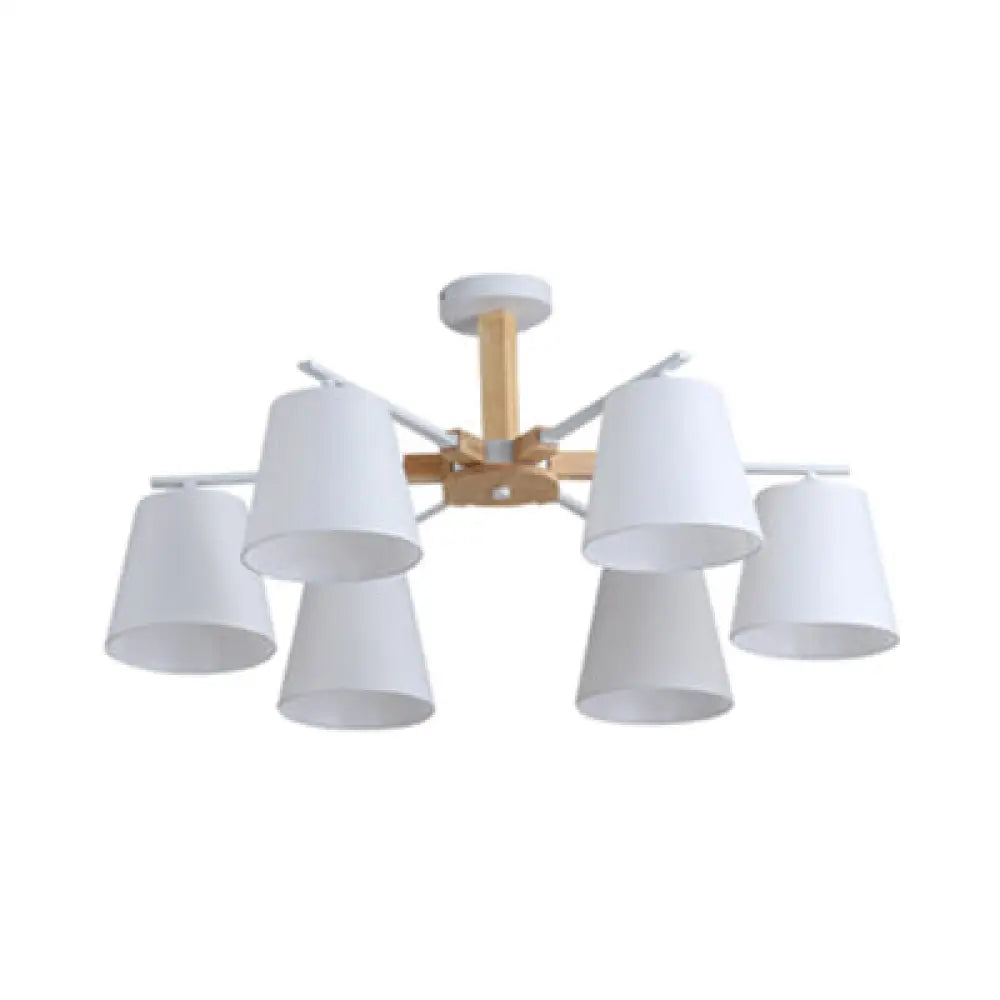 Suspension de plafond en bois moderne avec abat-jour en tissu effilé - Disponible avec 3/6 têtes pour l'éclairage de lustre de salon