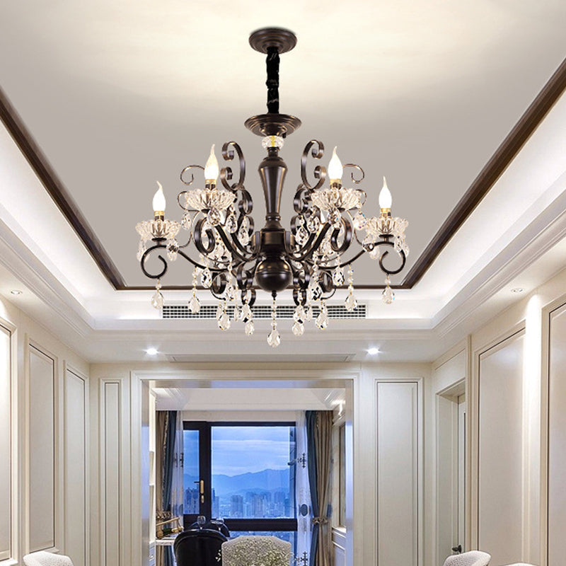 Minimalistic Metallic Candle Hanging Lamp With Crystal Strands - 6/8 Bulbs Black Chandelier 6 /