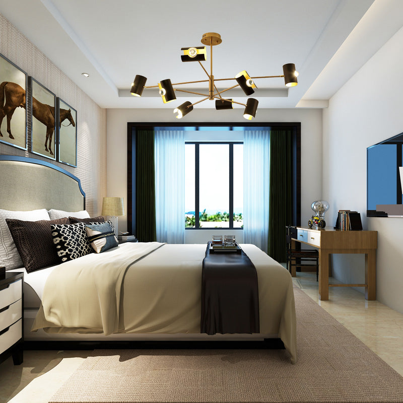 Modernist Starburst Chandelier Pendant Light - Metal 4/6/8 Lights Black Hanging Ceiling Lighting