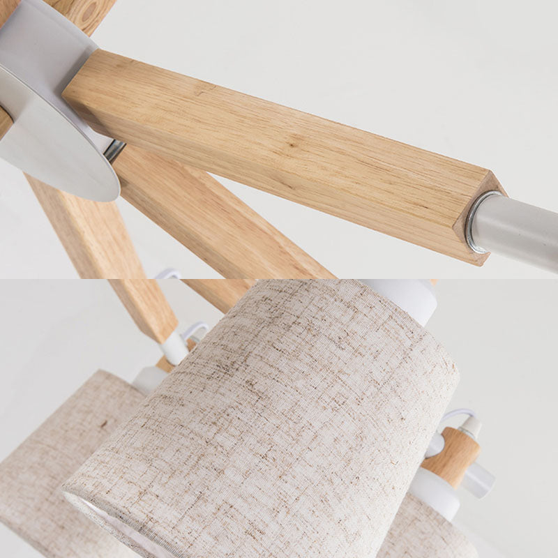 Contemporary Fabric Ceiling Pendant Light - 6 Heads Black/White Chandelier Fixture White