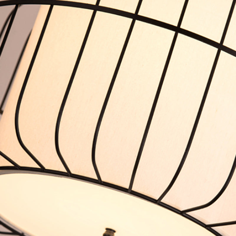 16/19.5 Wide Black Fabric Hanging Pendant Lantern - Traditional Stylish Down Lighting