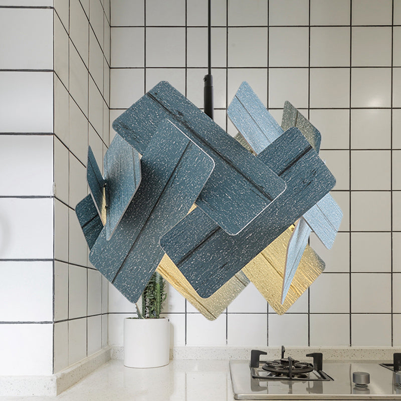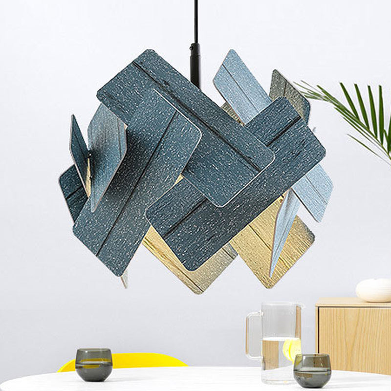 Lampe à suspension en acrylique de style nordique - Plafonnier suspendu moderne à 1 lampe en rouge/bleu/bois clair
