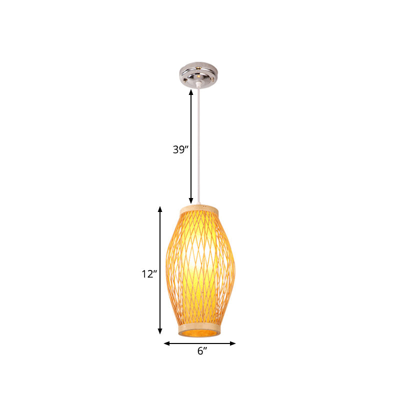 Modern Beige Cross Woven Pendant Hanging Light With Oval Shade - 1 Head Bamboo Lamp / 6