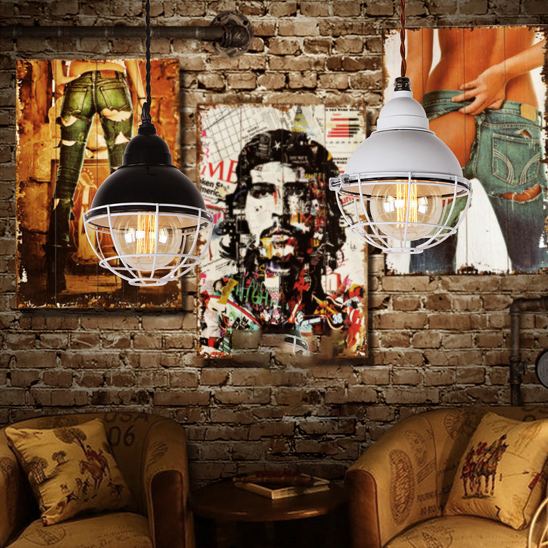 Double Bubble Indoor Pendant Light With Wire Frame Farmhouse Metal 1 - Black/White Ceiling