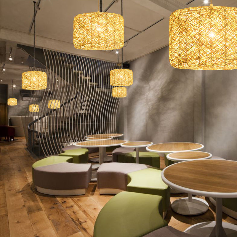 Tradition Rattan Drum Pendant Light - 1 Bulb 12’’/16’’/18’’ Wide Beige/Blue Hanging Ceiling