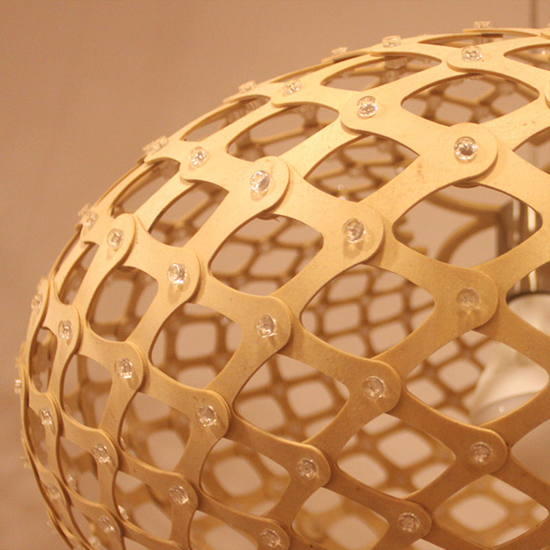 Contemporary Wood Suspension Pendant Light - Global Design 1 Bulb Beige 16/19.5 Wide / 16