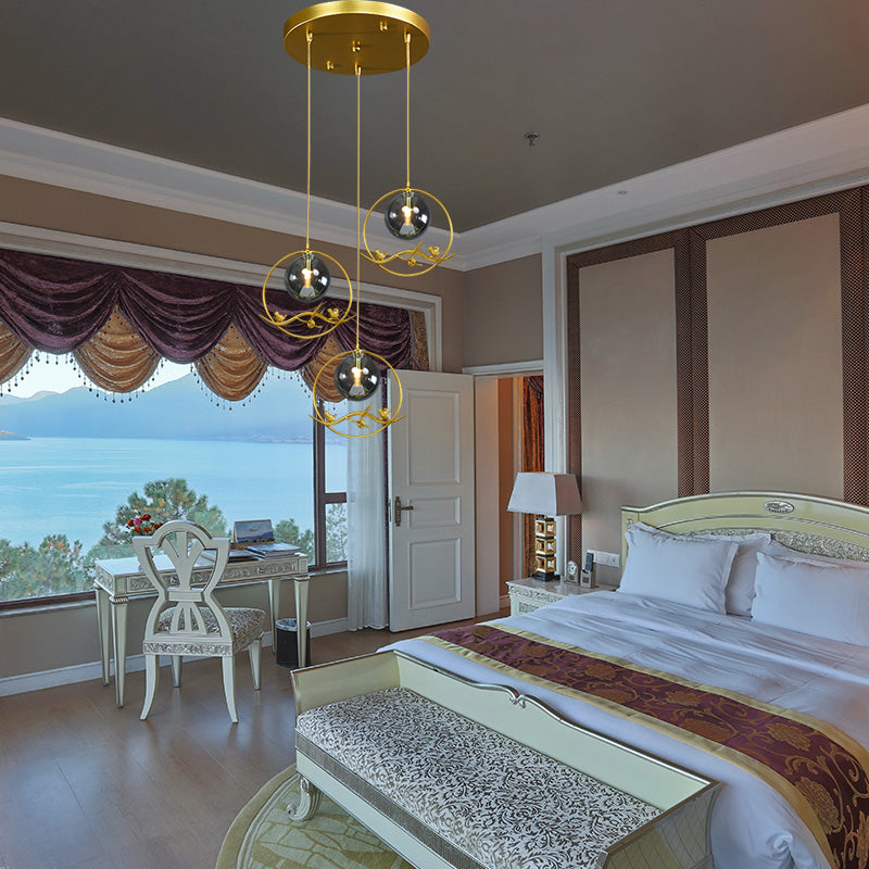 Vintage Smoke Gray/Clear/Amber Glass Globe Pendant Light - 1/3 Lights Brass Hanging In Round/Linear