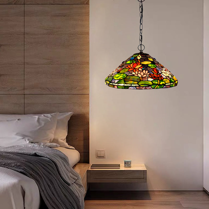 Ce produit est une suspension en verre teinté vert de style Tiffany.