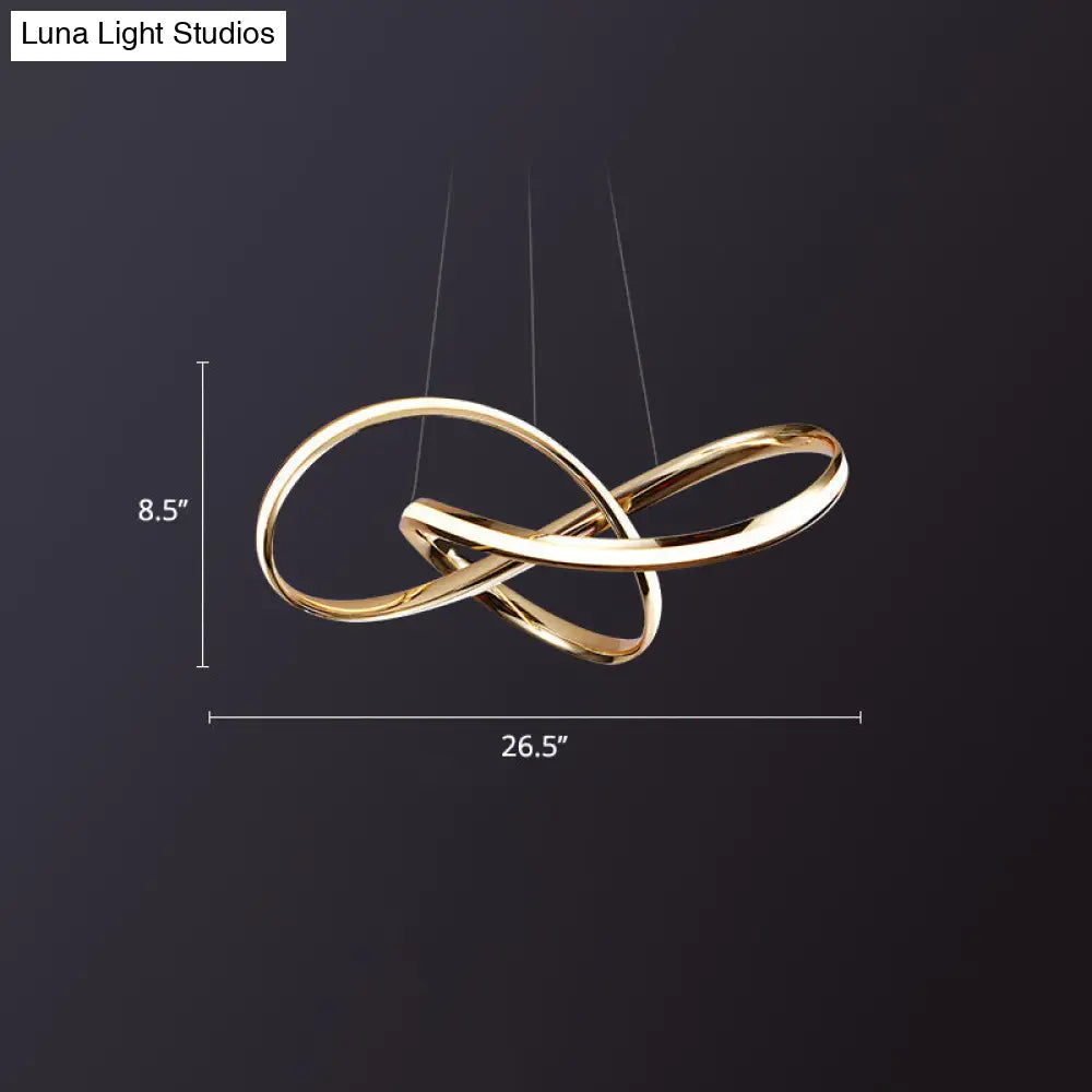 Lustre torsadé en aluminium avec lumière dorée artistique à LED pour plafond de salle à manger