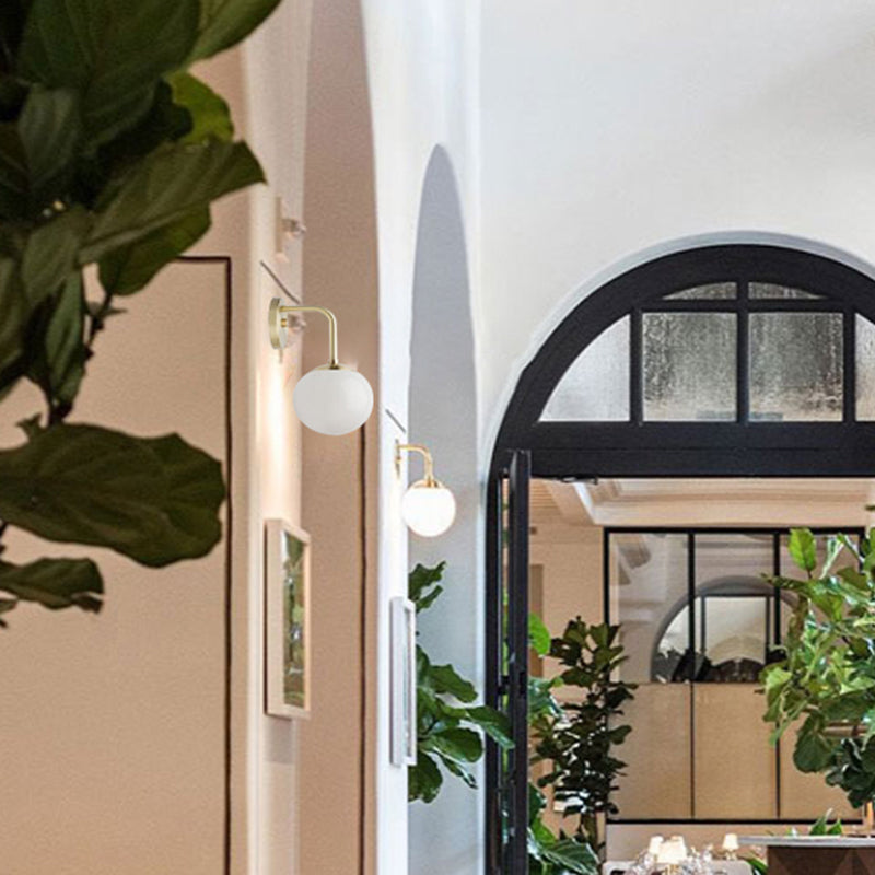 Minimalist Golden/Black Wall Sconce Light With Milky Glass Ball Shade - 1-Bulb Bedside Lamp Gold