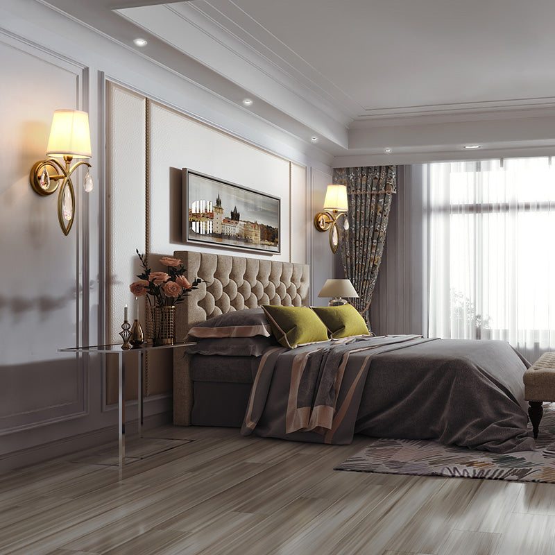 Applique murale conique moderne à 1 lumière avec déco en cristal en forme de larme en laiton - Applique en tissu élégante pour chambre à coucher