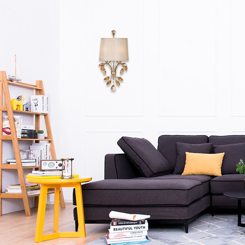 Applique murale conique contemporaine avec branche de feuille de cristal ambre et finition en laiton