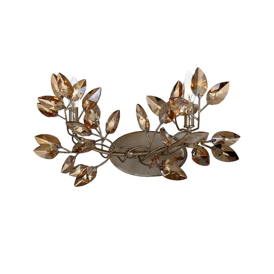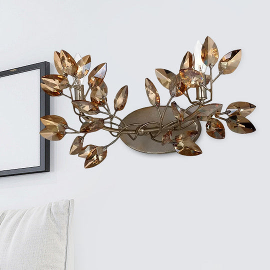 Applique murale café moderne avec abat-jour en cristal ambré et motif feuille de vigne - Ensemble de 2
