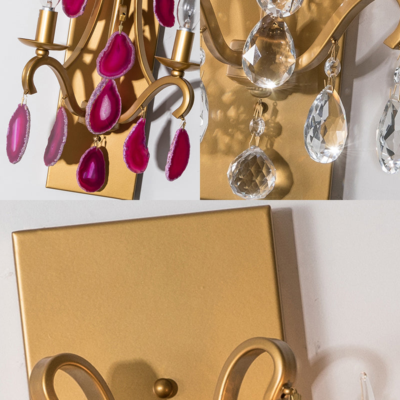 Vintage Style Metal Wall Lamp - Dark Purple/Clear Open Bulb Design With Crystal Deco & Rectangular