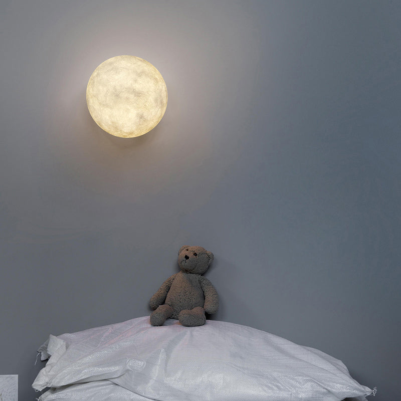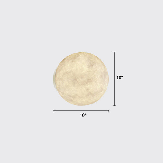 Art Deco Led Sconce Light: White Moon Flush Mount Wall Fixture With Resin Shade