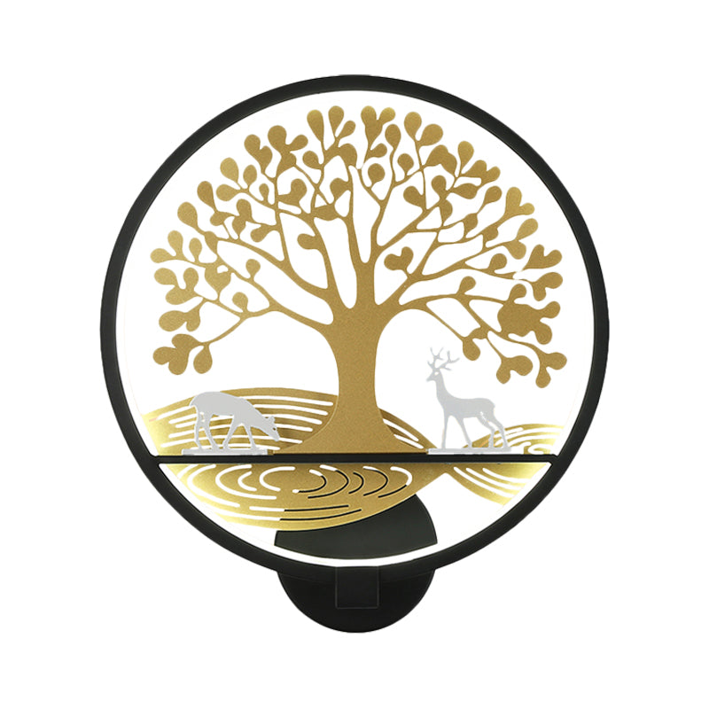 Applique murale moderne à LED pour arbre, montage en métal, noir/blanc, lampe murale de chevet avec lueur chaude/blanche
