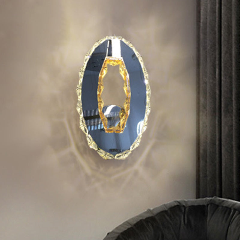 Luminaire mural contemporain à LED chromé : éclairage mural ovale à prisme en cristal en lumière chaude/blanche/2 couleurs