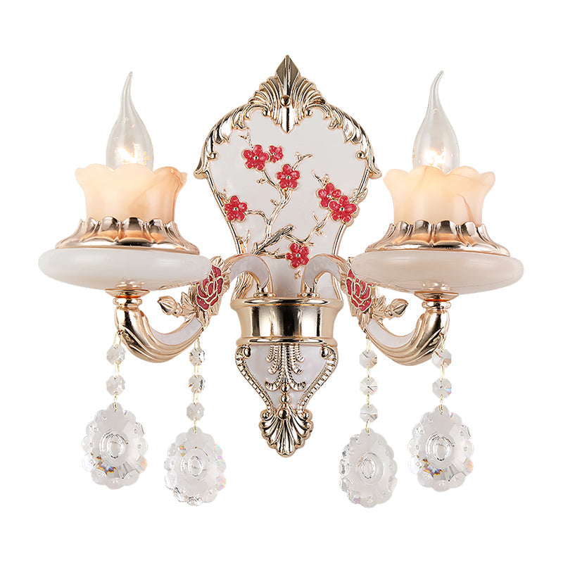 Applique murale dorée à 2 lumières en verre dépoli opale - Design postmoderne incurvé pour les restaurants
