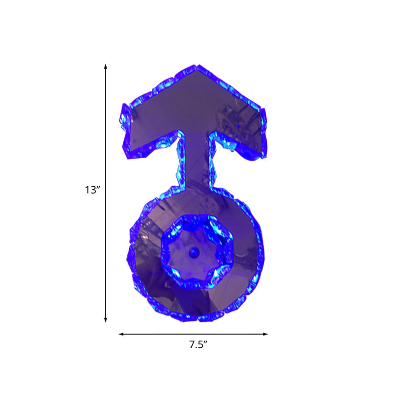 Applique de chambre à coucher à DEL de style minimaliste en chrome avec logo garçon, cristal à facettes et options d'éclairage multicolore