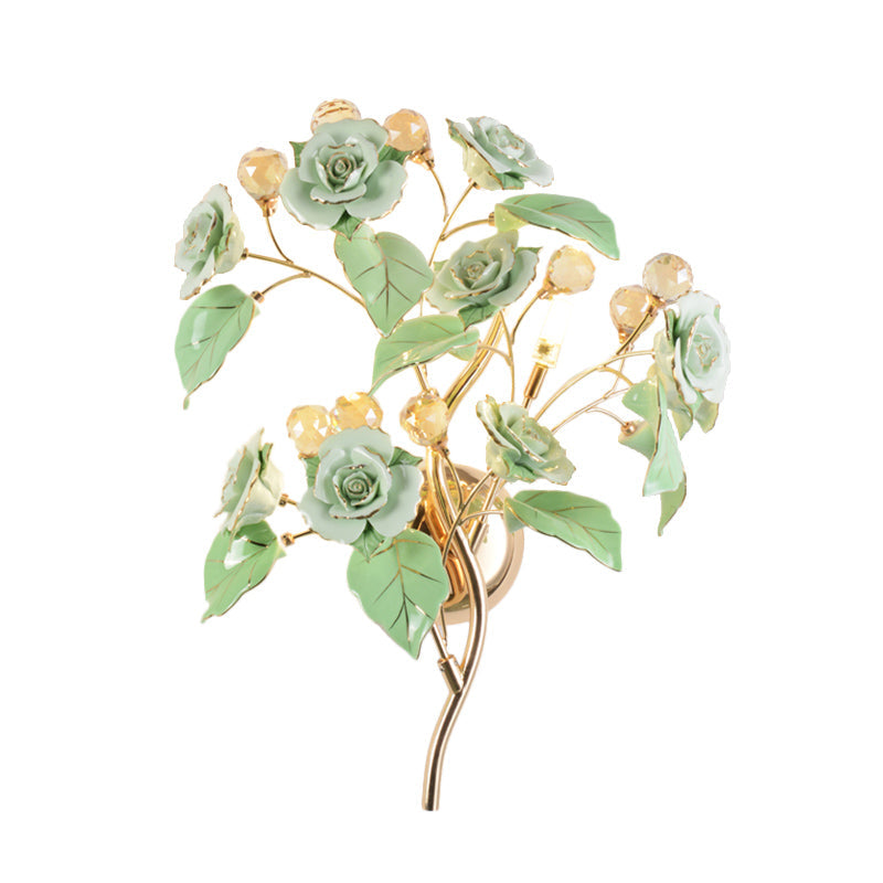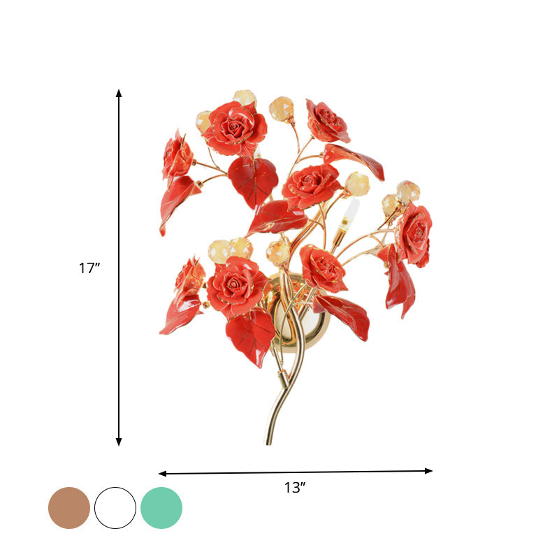 Applique murale moderne à fleurs en cristal à facettes - Luminaire mural pour chambre à coucher avec 3 ampoules - Options de couleur blanc/rouge/vert
