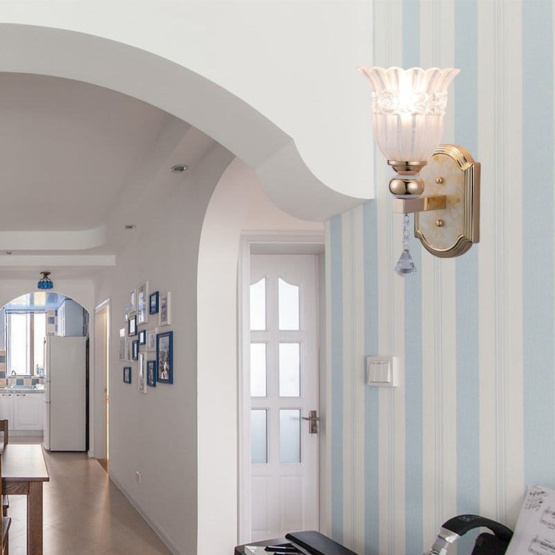 Applique Murale Florale en Verre Dépoli de Style Campagnard - Luminaire Mural Finition Or pour Couloir