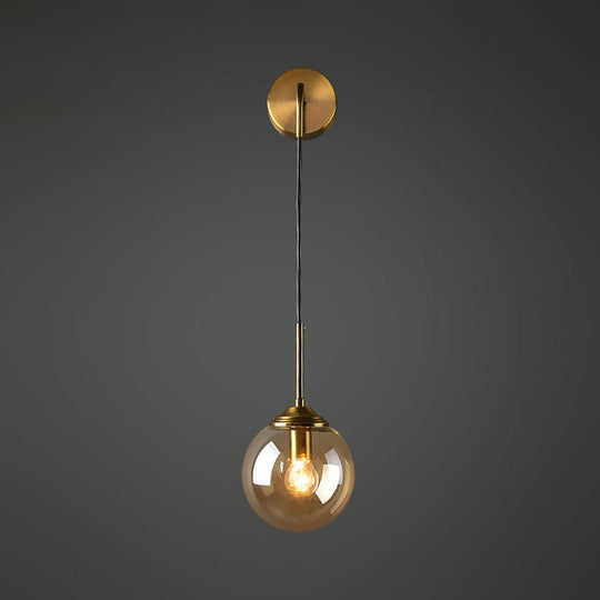 Modern 1-Head Globe Wall Light In Gold - Perfect For Bedrooms / Amber
