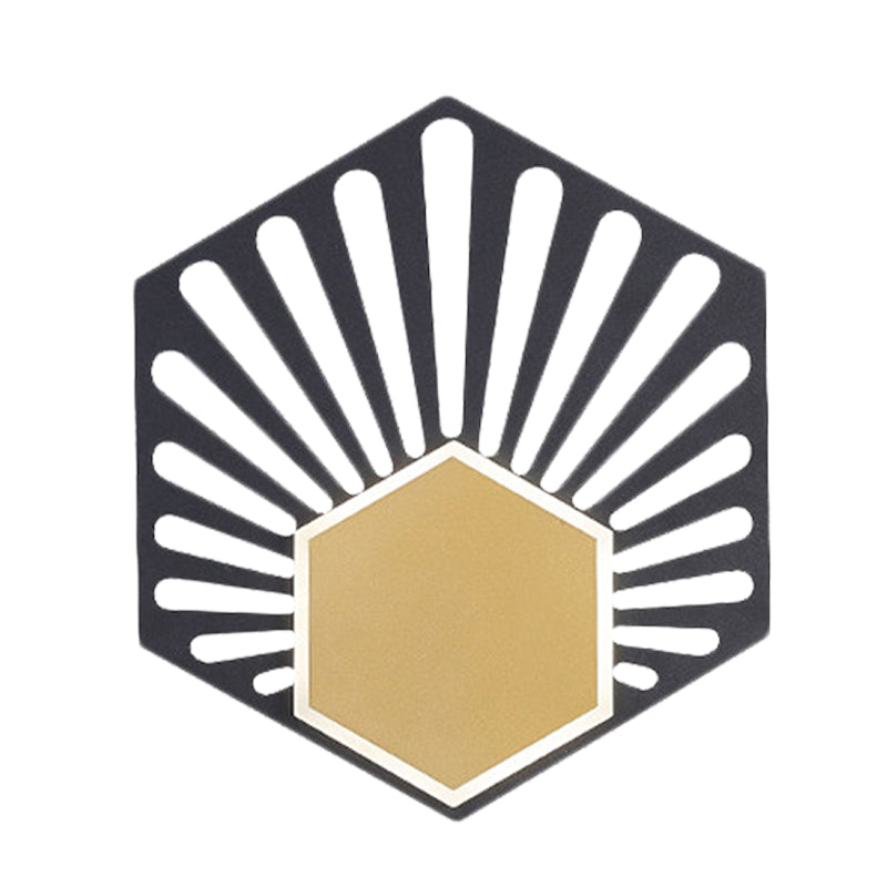 Modern Hexagon Wall Mounted Led Bedside Sconce Lamp - Black Metallic Finish Fan Design 8/10 Wide / 8