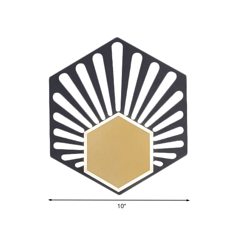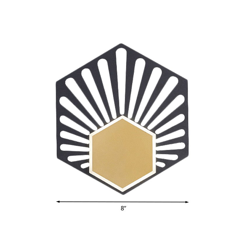 Modern Hexagon Wall Mounted Led Bedside Sconce Lamp - Black Metallic Finish Fan Design 8/10 Wide