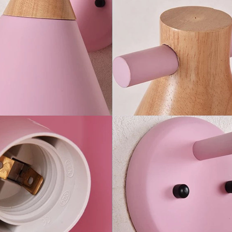 Solid Wood Nordic Macaroon Sconce Light Fixture With Metal Wall Arm Pink