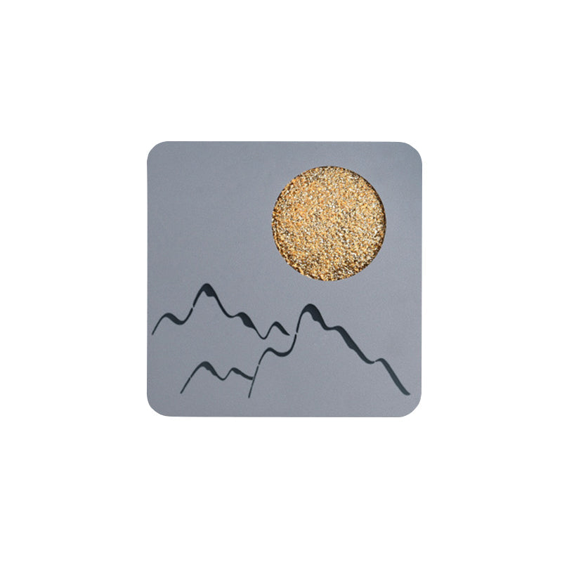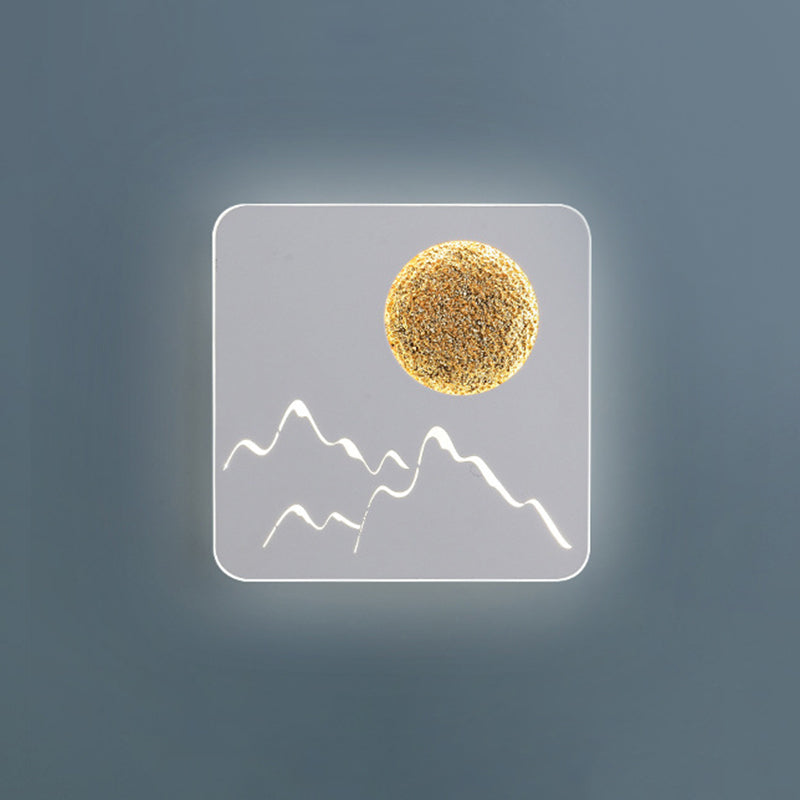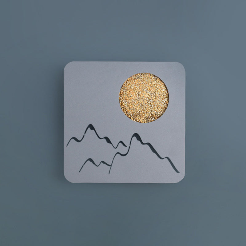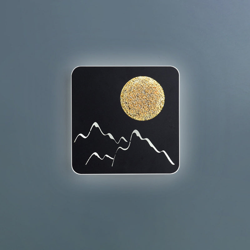 Applique murale à encastrer à LED nordique minimaliste - Mini design rond/carré en noir/blanc/gris avec motif pleine lune-montagne