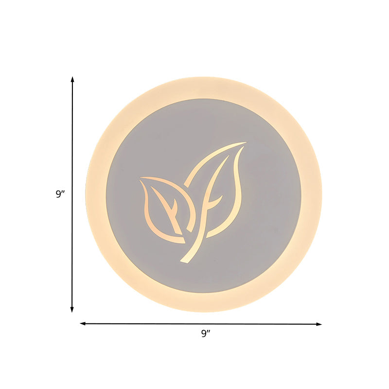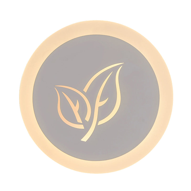 Applique murale affleurante à DEL contemporaine en blanc avec motif de feuilles - Design de cercle moderne