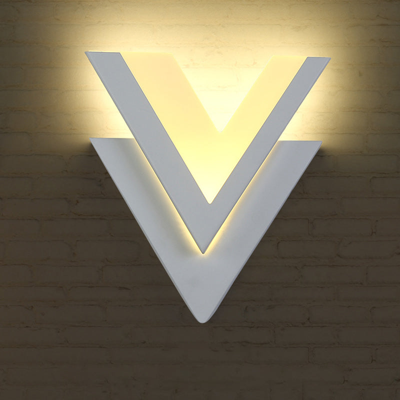 Contemporary Double-V Sconce Led Wall Mount Light Fixture In Warm/White - Metallic Stairway Lighting