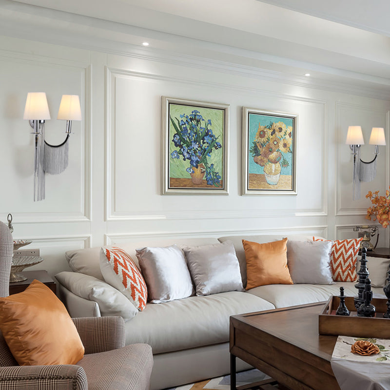 Modernist 2-Light Plastic Cone Shade Wall Sconce With Aluminum Tassel In Black/Silver Silver