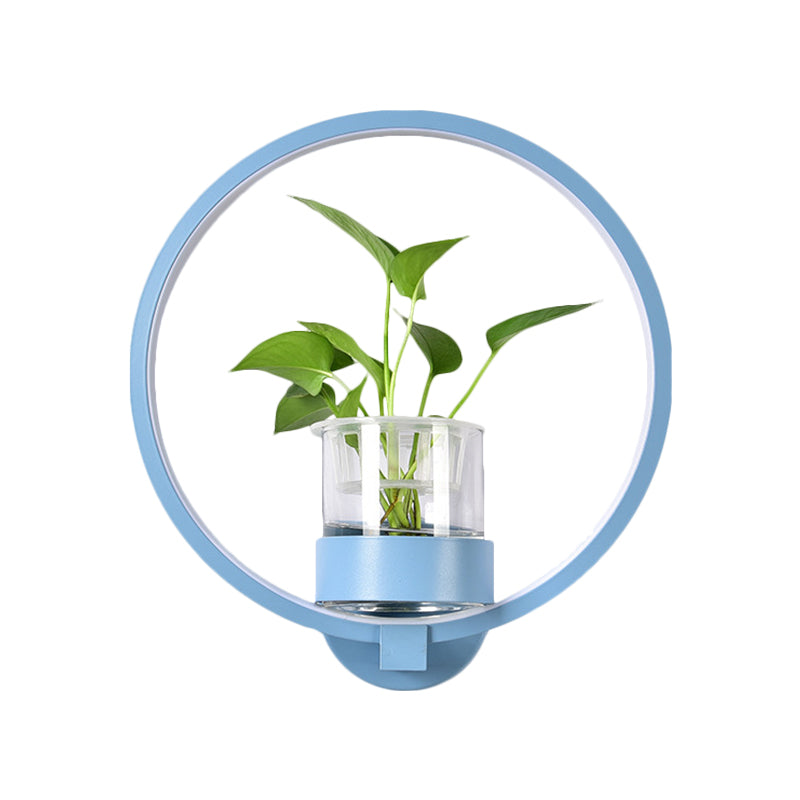 Macaron Metal Led Wall Sconce With Plant Pot For Bedroom - Grey/Yellow/Blue Blue / Round