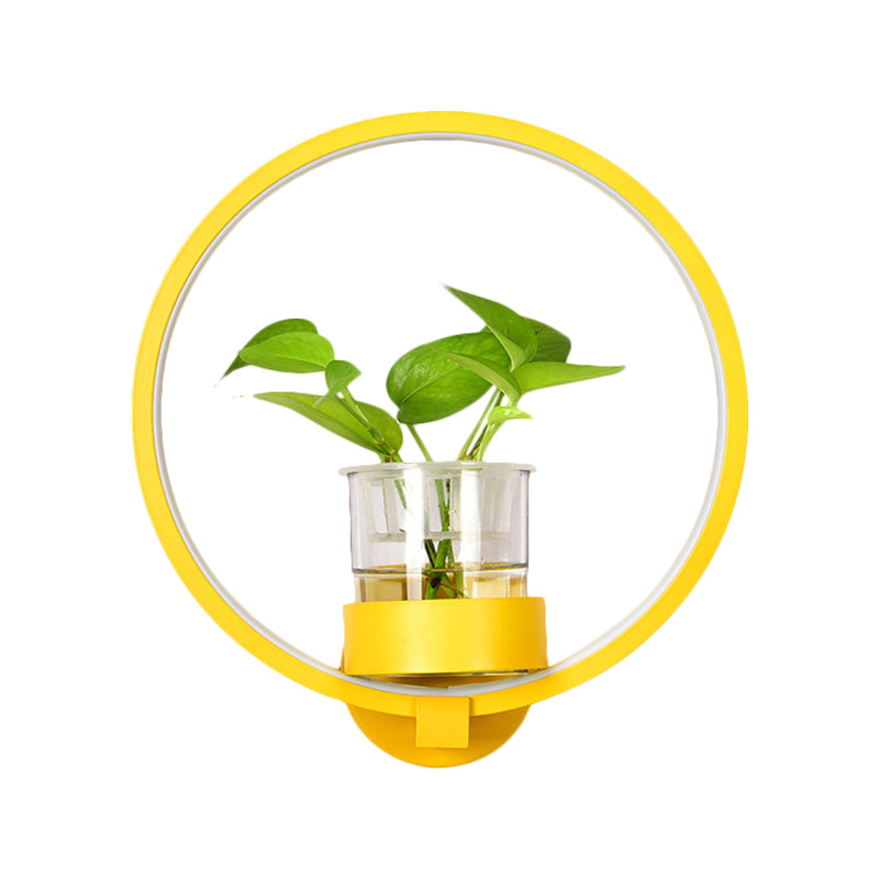 Macaron Metal Led Wall Sconce With Plant Pot For Bedroom - Grey/Yellow/Blue Yellow / Round