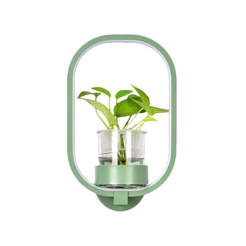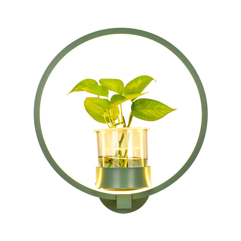 Macaron Metal Led Wall Sconce With Plant Pot For Bedroom - Grey/Yellow/Blue Green / Round