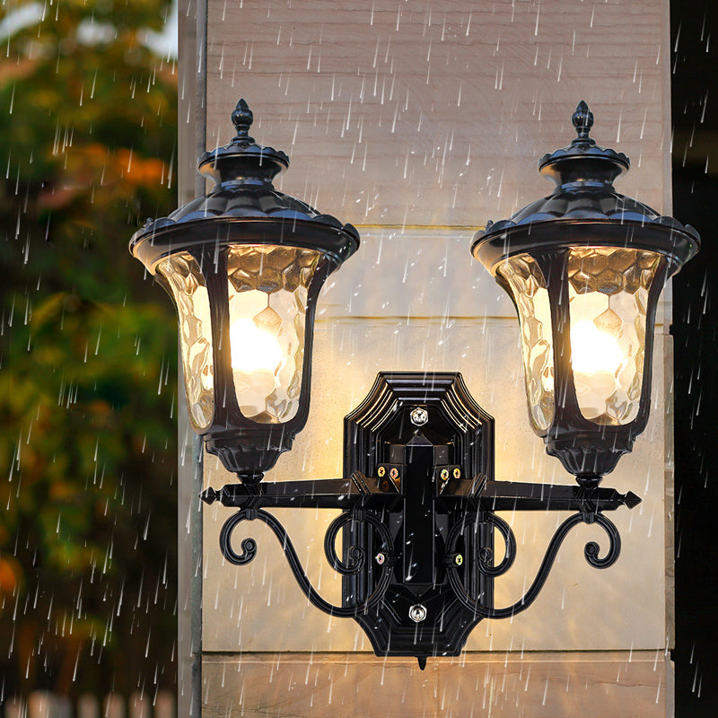 Applique murale traditionnelle en verre à fossettes avec abat-jour en forme d'urne - Applique murale à 2 ampoules en noir