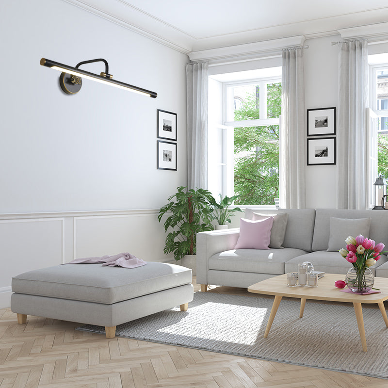 Applique murale à LED en noir/laiton antique avec design linéaire en métal traditionnel - Lumière blanche/chaude/naturelle, 14"/18"/23" de largeur