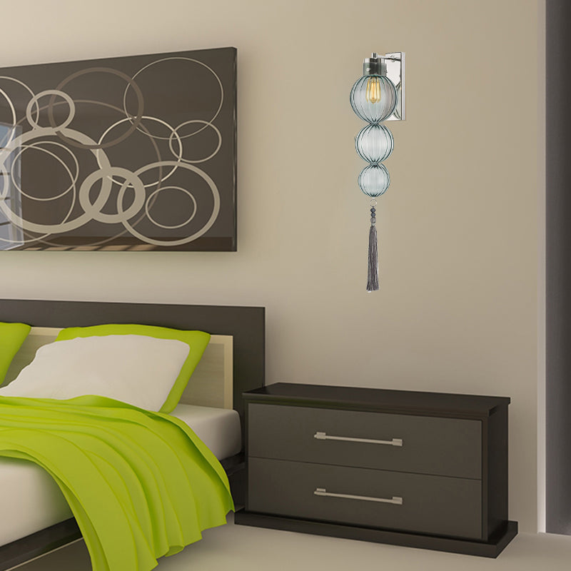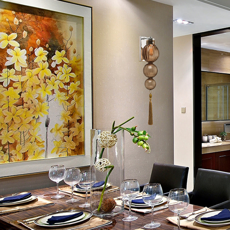 Chinese Style Brass/Chrome Sphere Sconce Light - Clear/Amber/Light Blue Glass Wall Mount Lamp With