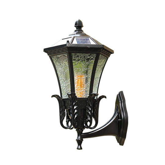 Vintage House Led Solar Wall Light With Metal Fixture And Glass Shade Black / B