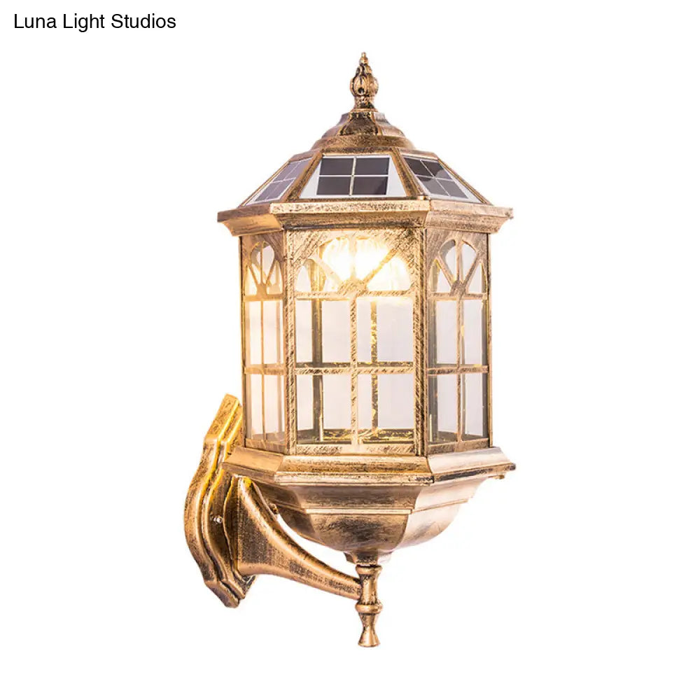 Applique Murale Solaire en Verre à Facettes avec Éclairage LED pour Extérieur - Style Traditionnel Noir/Laiton