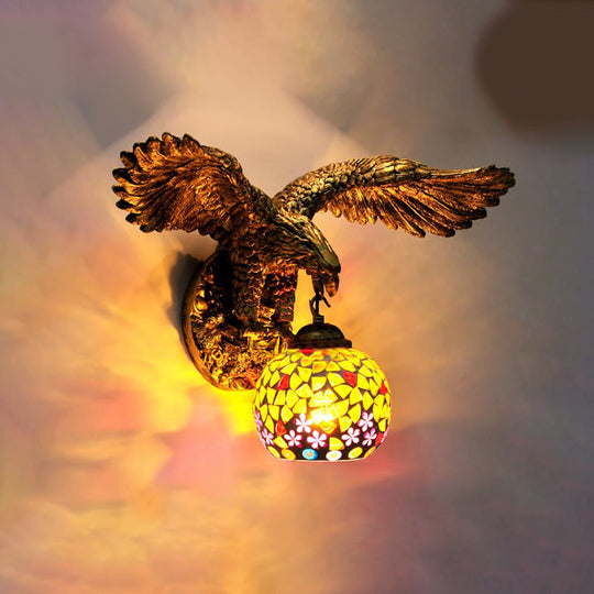 Globe Wall Mounted Mediterranean Sconce Light With White/Beige/Red Glass For Outdoor Use Yellow